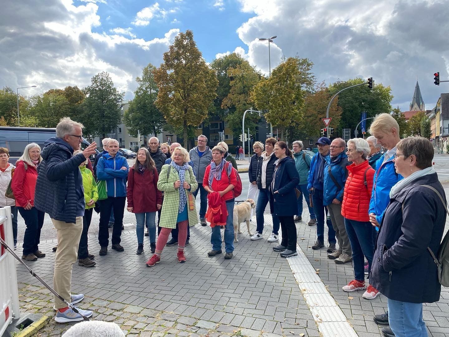 Die Mitwandernden erfuhren unterwegs auch interessante Anekdoten, Details und Dönekes aus der Stadtgeschichte und Stadtentwicklung.