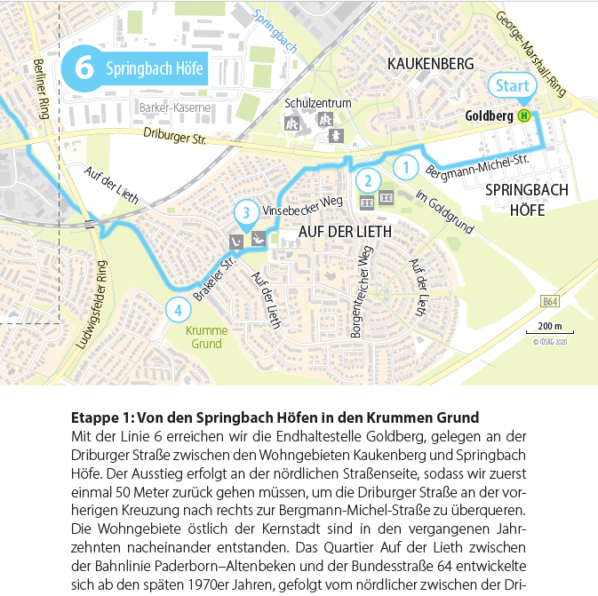 Gemeinsam mit Peter Schuto, Autor des Wanderführers "BusGang Paderborn", ging der Bürgermeister auf Aspekte der aktuellen Stadtentwicklung im Neubaugebiet Springbach Höfe und mit Blick auf die Konversion der Barker-Kaserne ein. Darüber hinaus erfuhren die Mitwandernden auch interessante Details des Hochwasserschutzkonzepts der Stadt, dessen Bedeutung spätestens seit der Ahrtal-Katastrophe 2021 wieder in den Fokus gerückt ist.